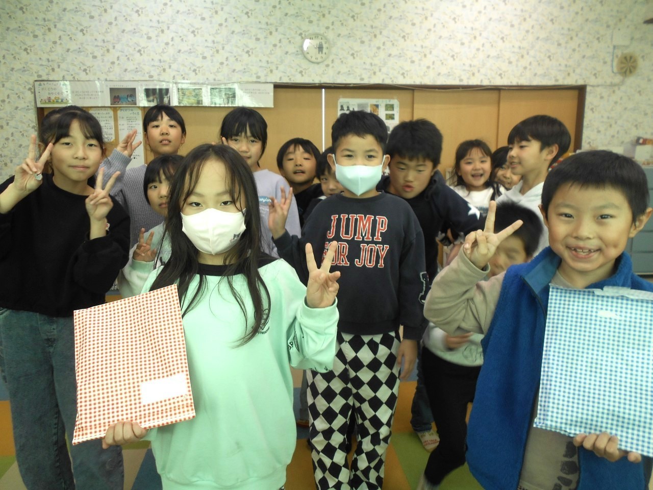 1年生は厚紙を組み立てて作る貯金箱作り、上級生は木のパーツをはめ込んで作る貯金箱を作りました。上級生が1年生の工作を手伝う場面もあり頼もしく感じました☆