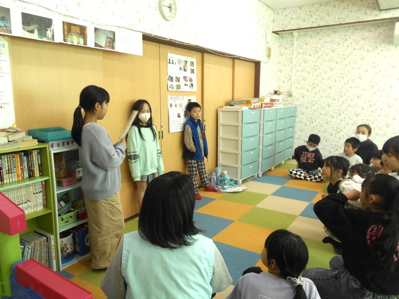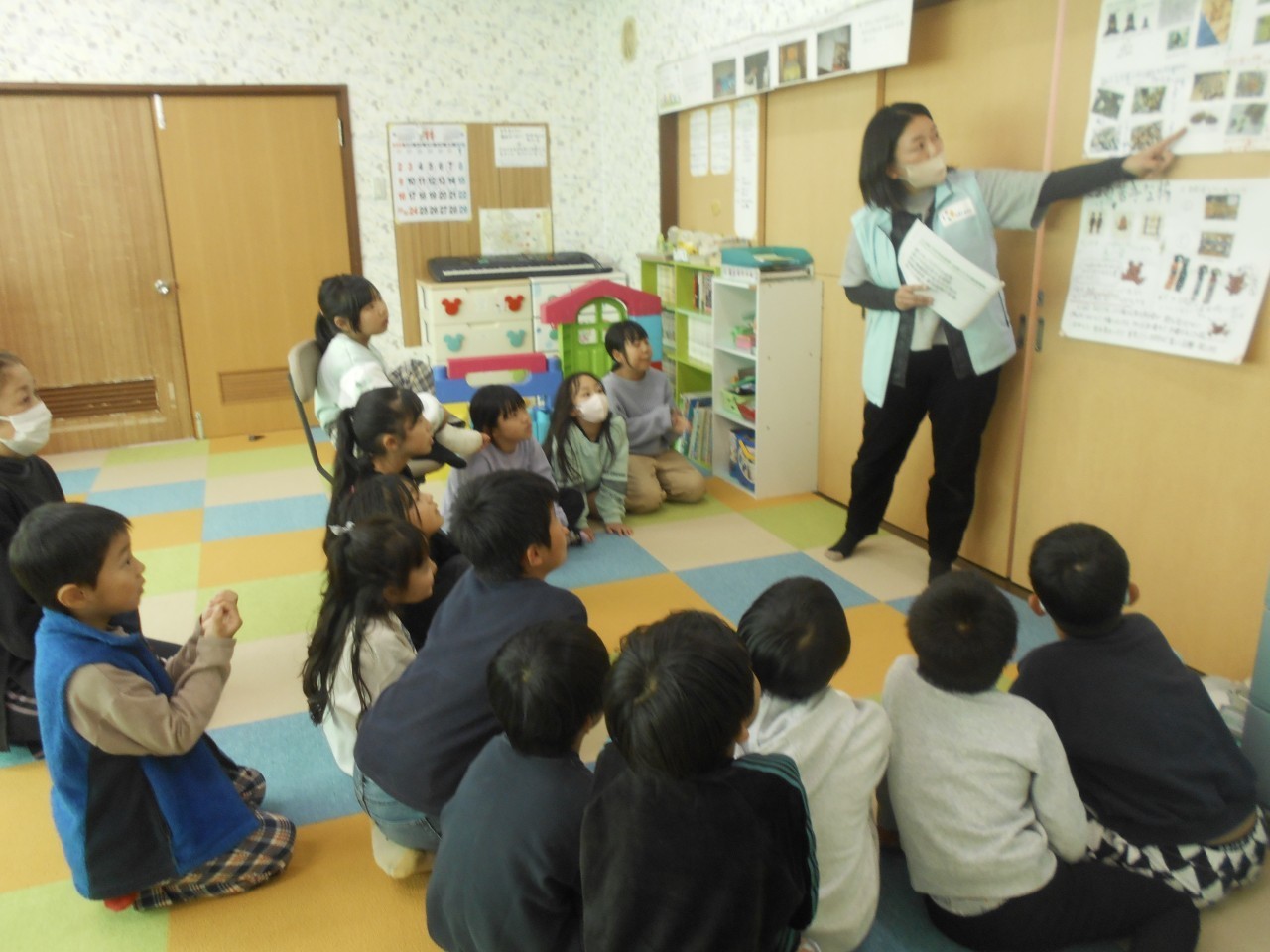もう一つの行事は、最近話題のクマについて皆で学びました。どうして町によく出るようになったのか・クマが来ないようにするには・クマとあわないようにするには・もし出会ってしまったらどうする?という内容でした。クマが近くにきてしまった時の防御姿勢の練習をしました。放課後の活動も気を付けていきたいと思います。