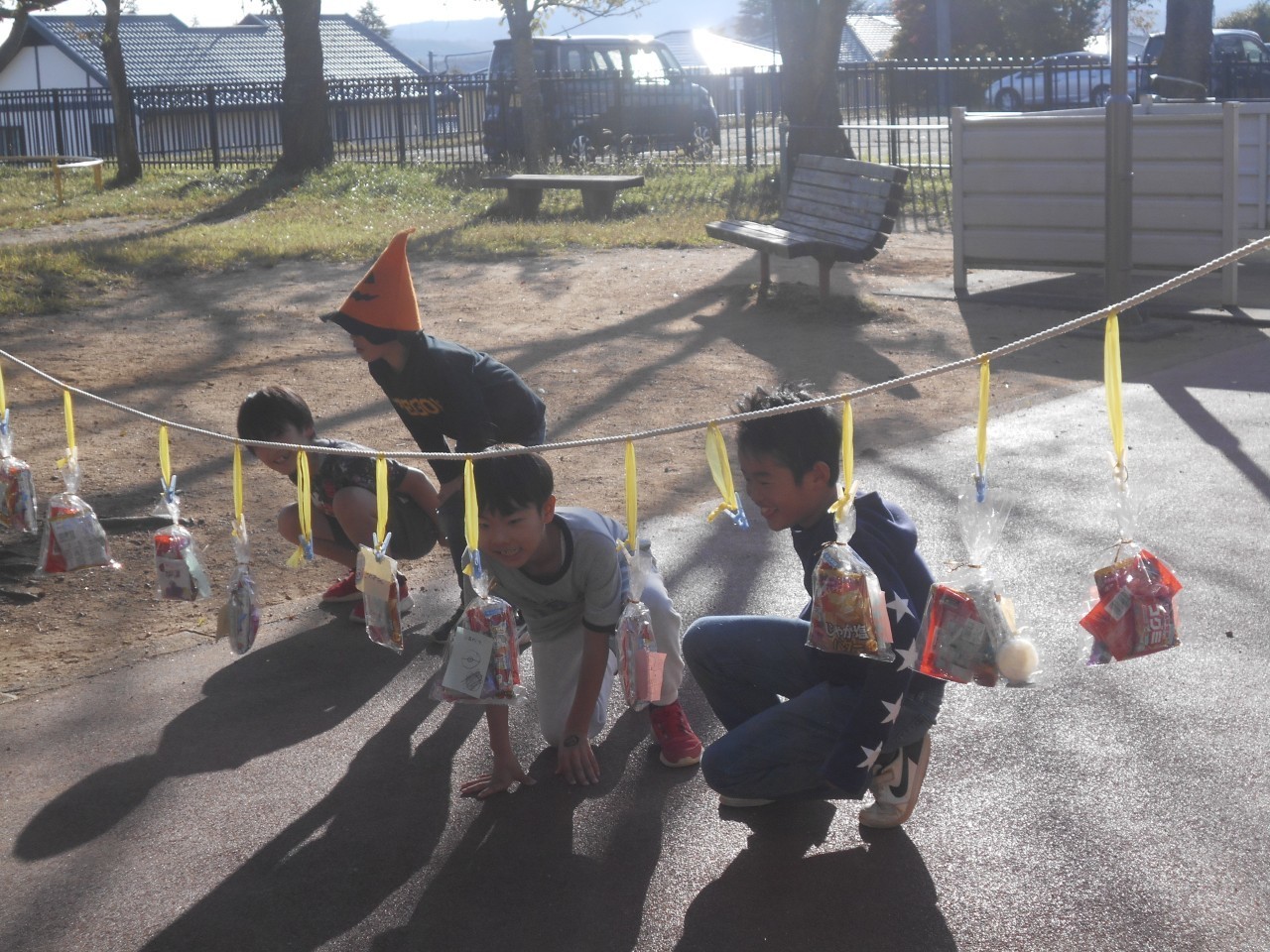 自分たちで袋詰めしたお菓子を見つけてキャッチしました☆