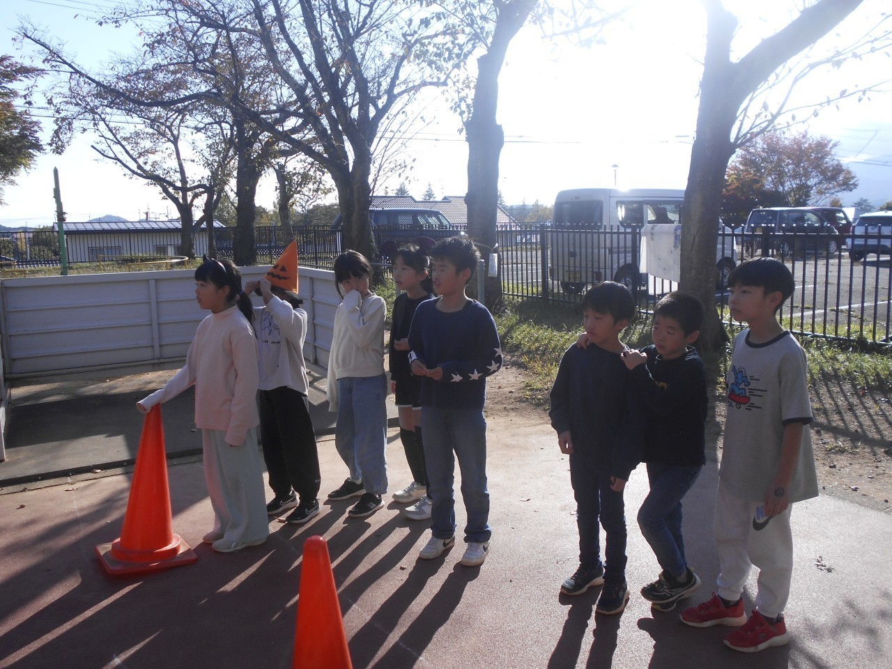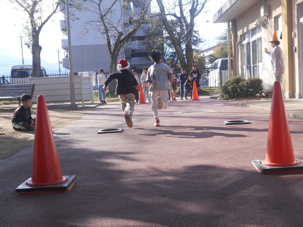 ミニ運動会では3年生が考えたコースで障害物競争をやりました。