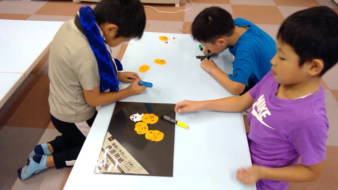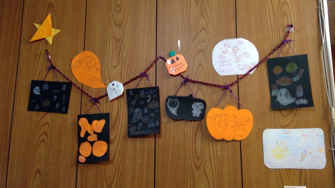 ハロウィン会では10月に入ってから少しづつみんなでポスター作りをしていきました。