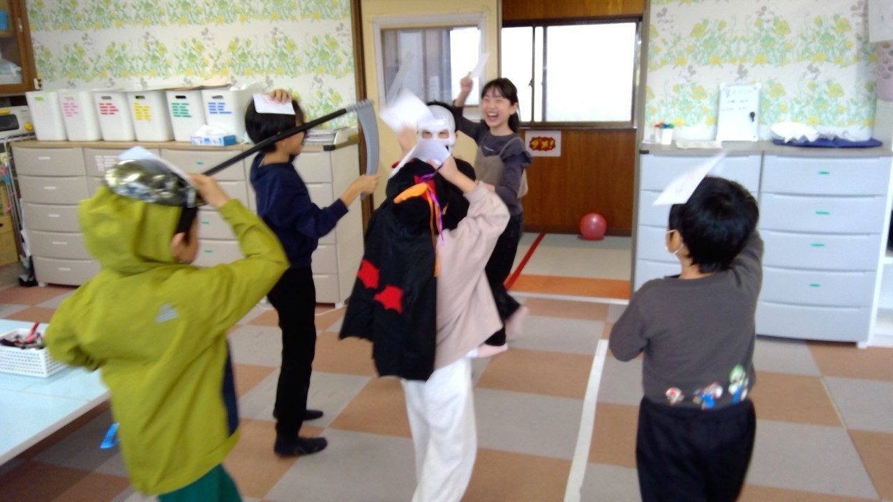 ハロウィン会当日、かわいいモンスターが勢ぞろい!宝探し・飴のつかみ取りなどを行い最後まで楽しむことが出来ました。