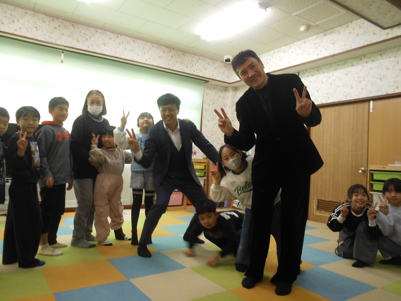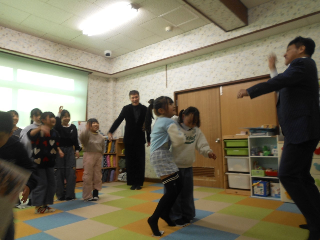 寄贈式のあとは、お子さんたちと交流会と題してゲームを楽しみました♪♪貨物列車ゲーム・新聞島生き残りジャンケン大会を盛り上げて頂きました☆