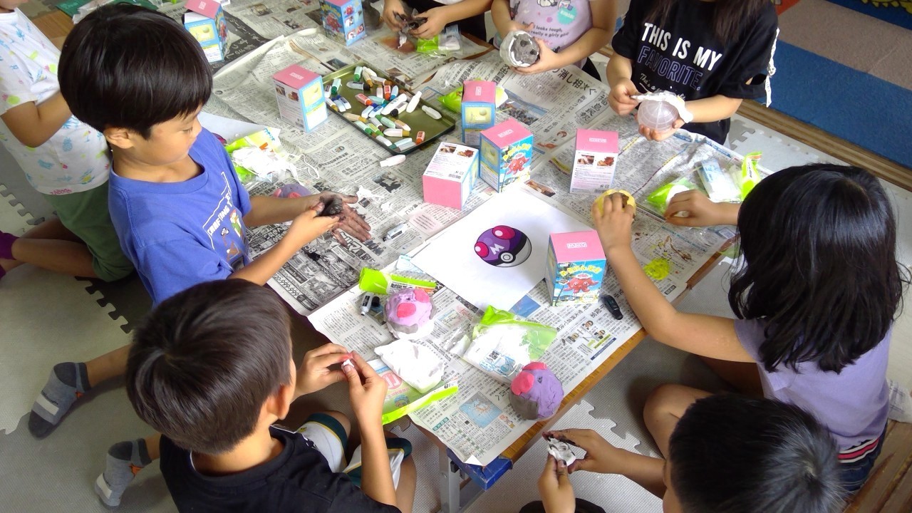 粘土部分には、キャラクターや動物を作ったり、花などの柄を描いたり思いおもいに作っていました。