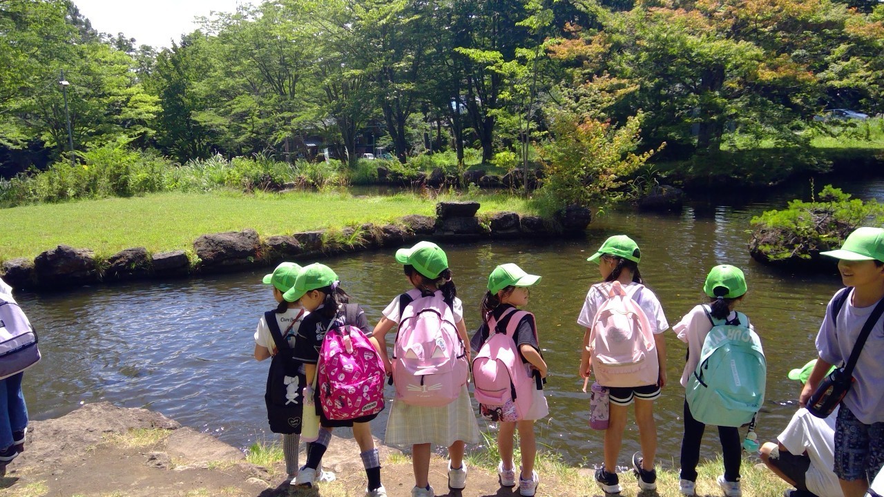 施設の生き物を観察したり、戸外にある自然豊かな場所で虫探しや鯉に餌をやったりと、楽しい時間を過ごしました。