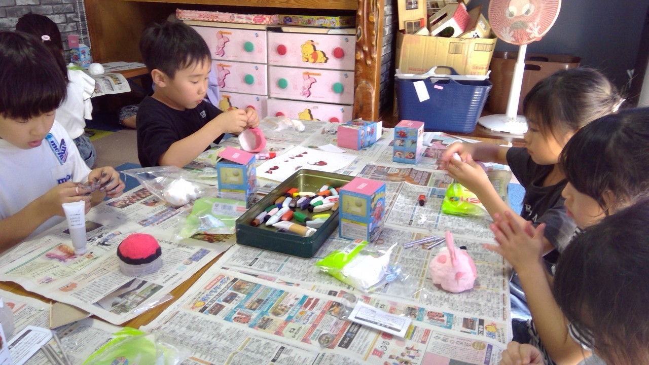 夏休みの工作では、粘土を使った風鈴作りをしました!